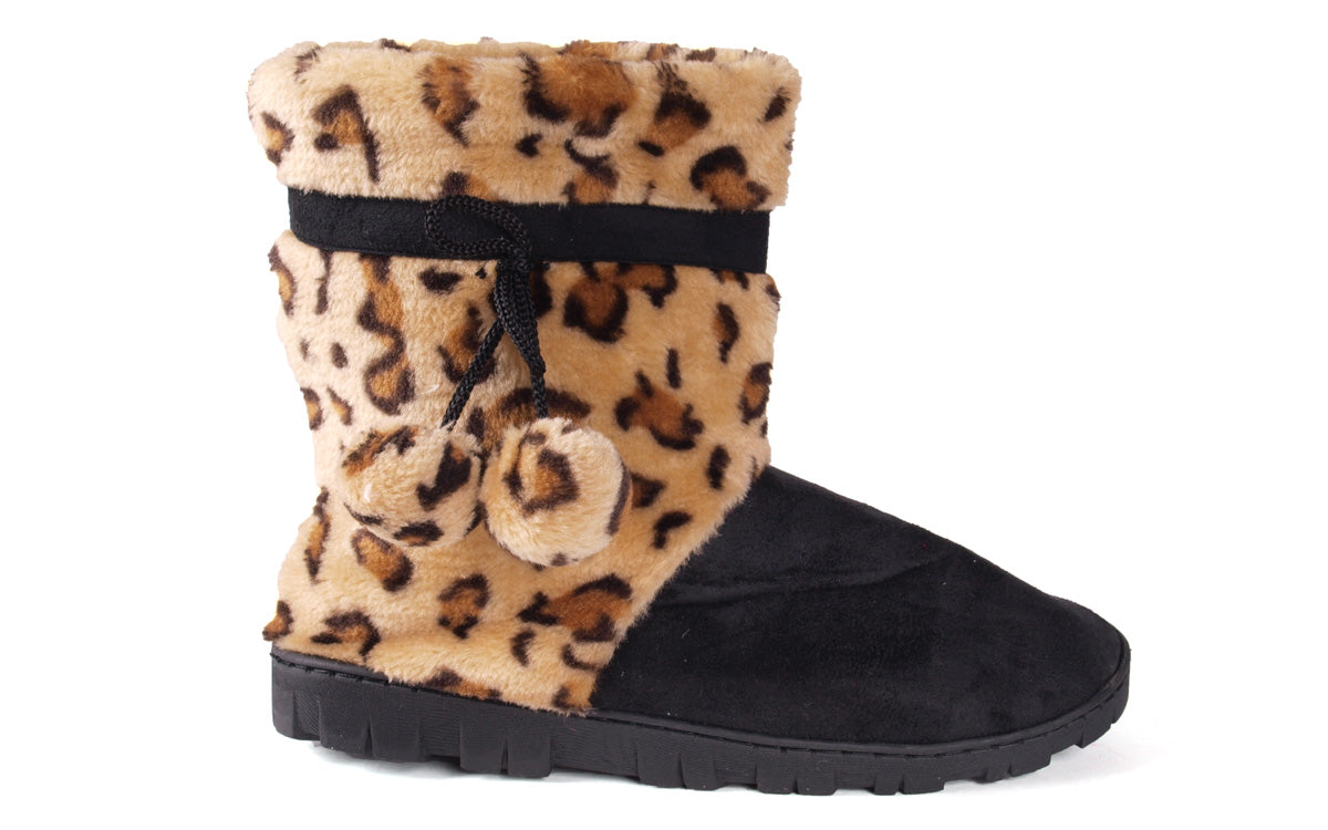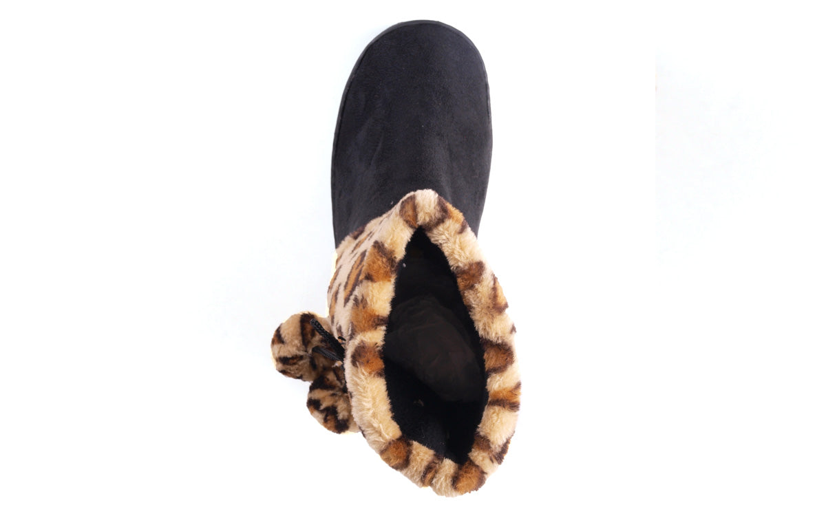 Step into wild comfort with these Leopard Print & Black Micro Boots—the perfect mix of bold fashion and plush warmth. Featuring a soft faux-fur leopard print upper paired with sleek black micro-suede, these boots deliver head-turning style without sacrificing coziness.