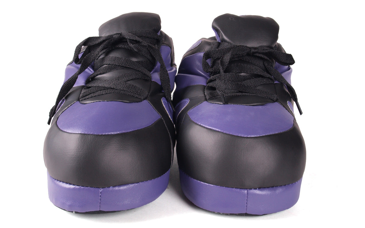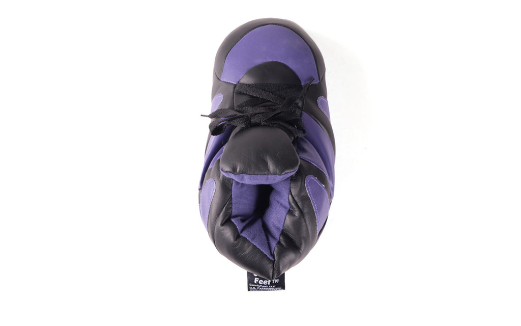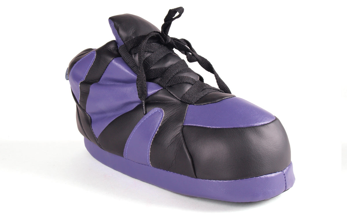 Made with soft, flexible faux leather in a striking purple-and-black color combo, these plush sneaker slippers bring instant personality to your loungewear game. The padded interior keeps your feet warm and comfy, while the playful oversized sneaker shape adds a fun twist you’ll want to show off.