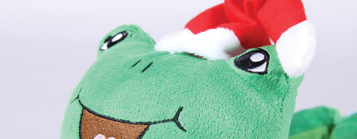 🎄 Festive Holiday Design – A smiling plush toad complete with Santa hat and red scarf for maximum Christmas charm.