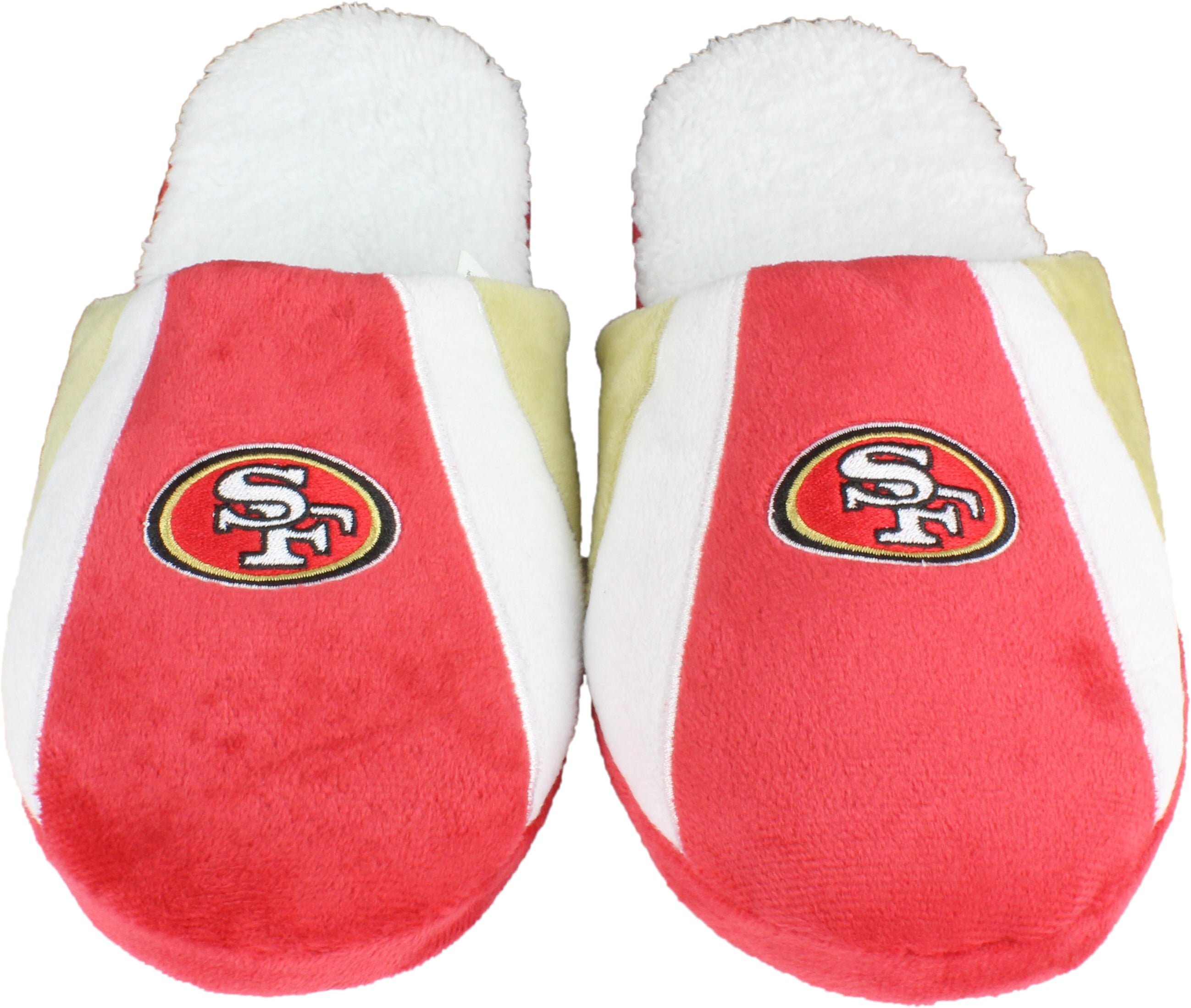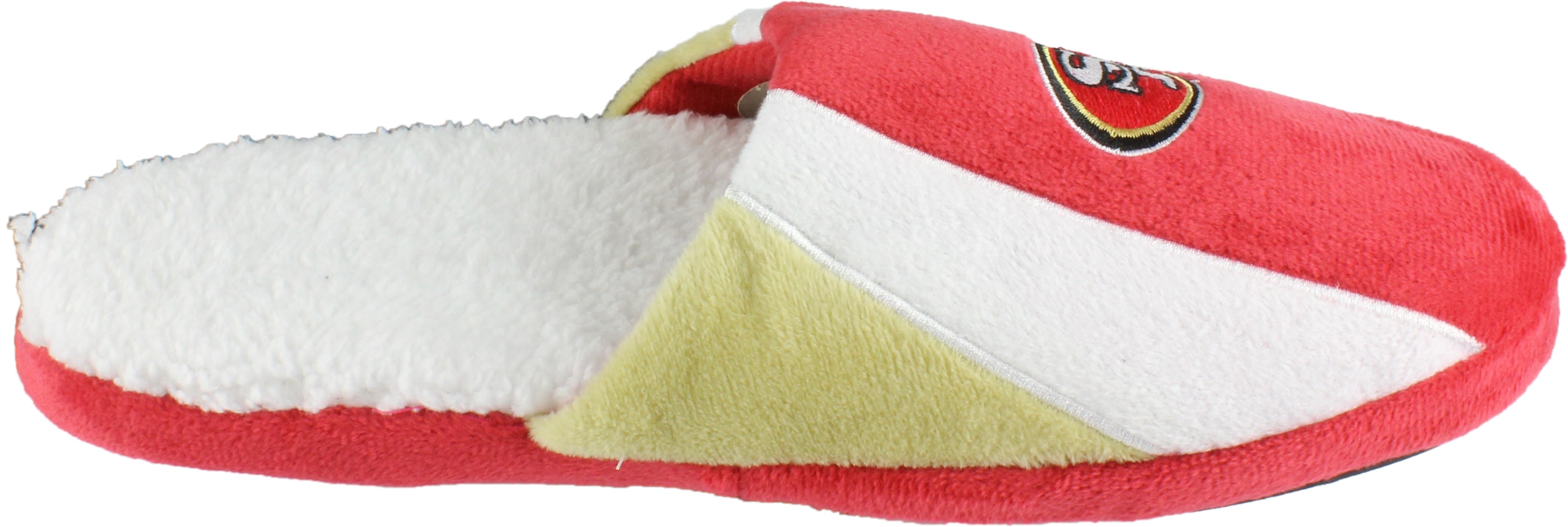 Wrapped in bold 49ers red, gold, and white, and topped off with the iconic team logo, these slippers are a must-have for any member of The Faithful looking to lounge in touchdown-level comfort.